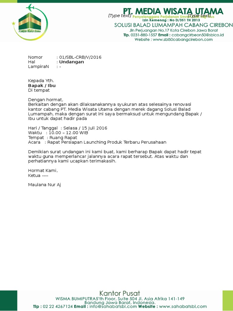 Contoh Surat Undangan Email Terbaru. Atas perhatiannya kami ucapkan terima. Maju Makmur Kabupaten Malang Telp Fax.